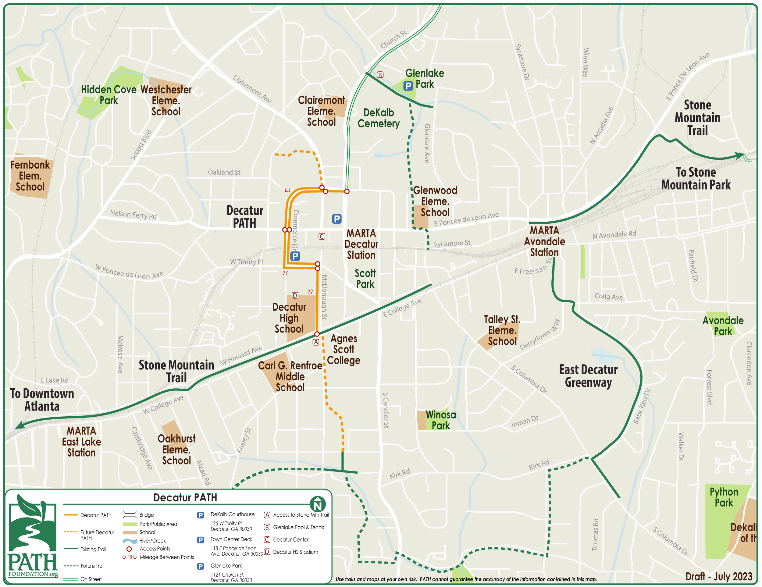 Major Parking/Access Points: DeKalb Courthouse, Town Center Deck, Decatur MARTA Transit Station