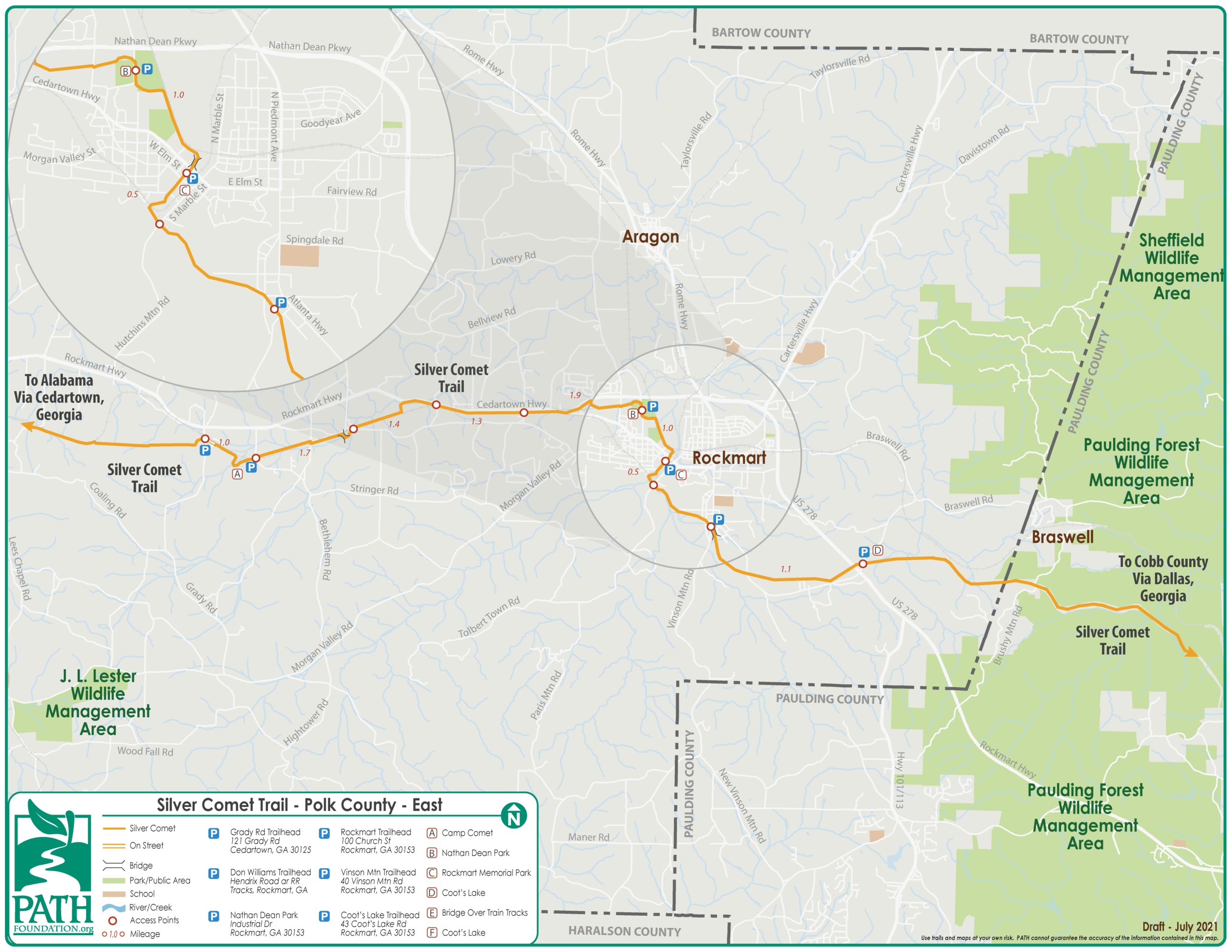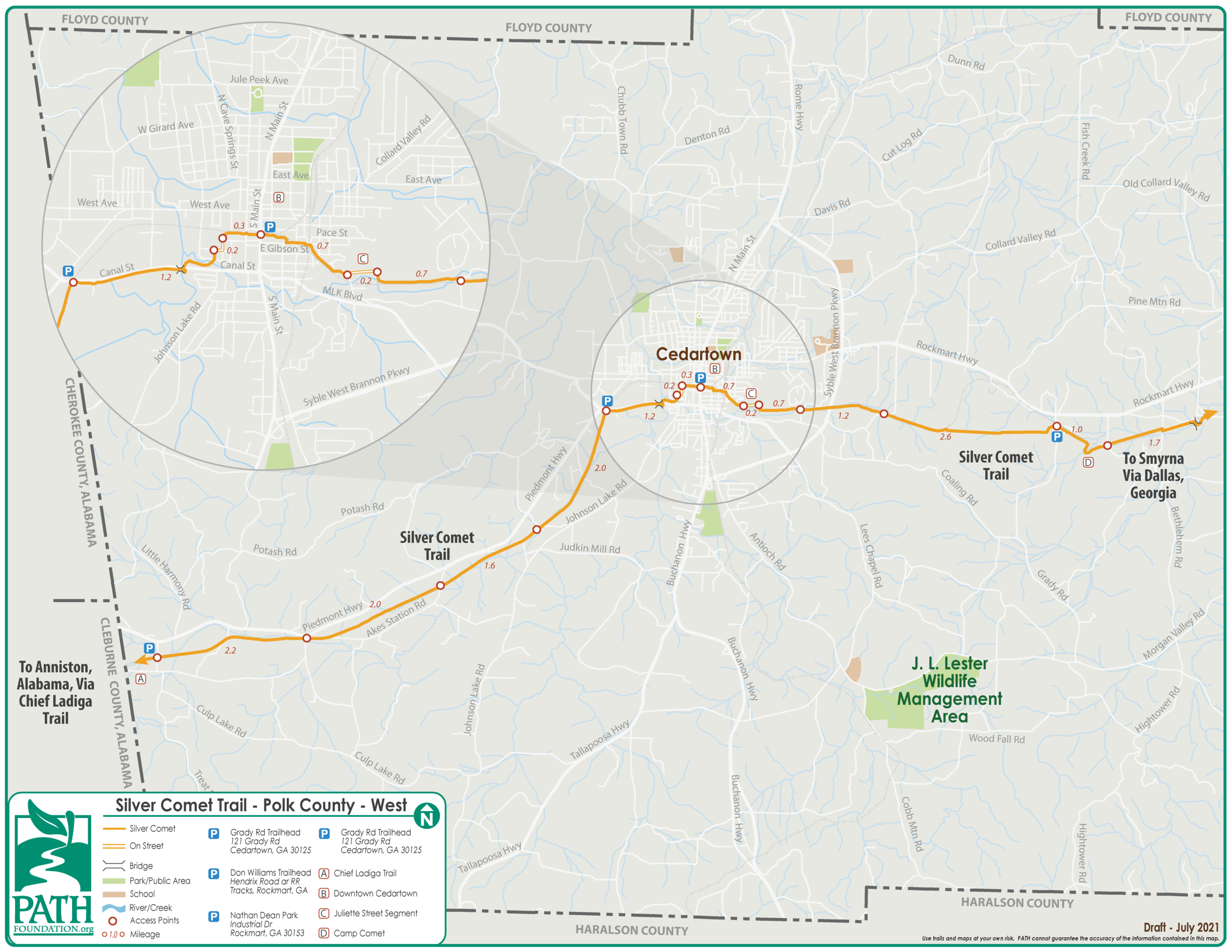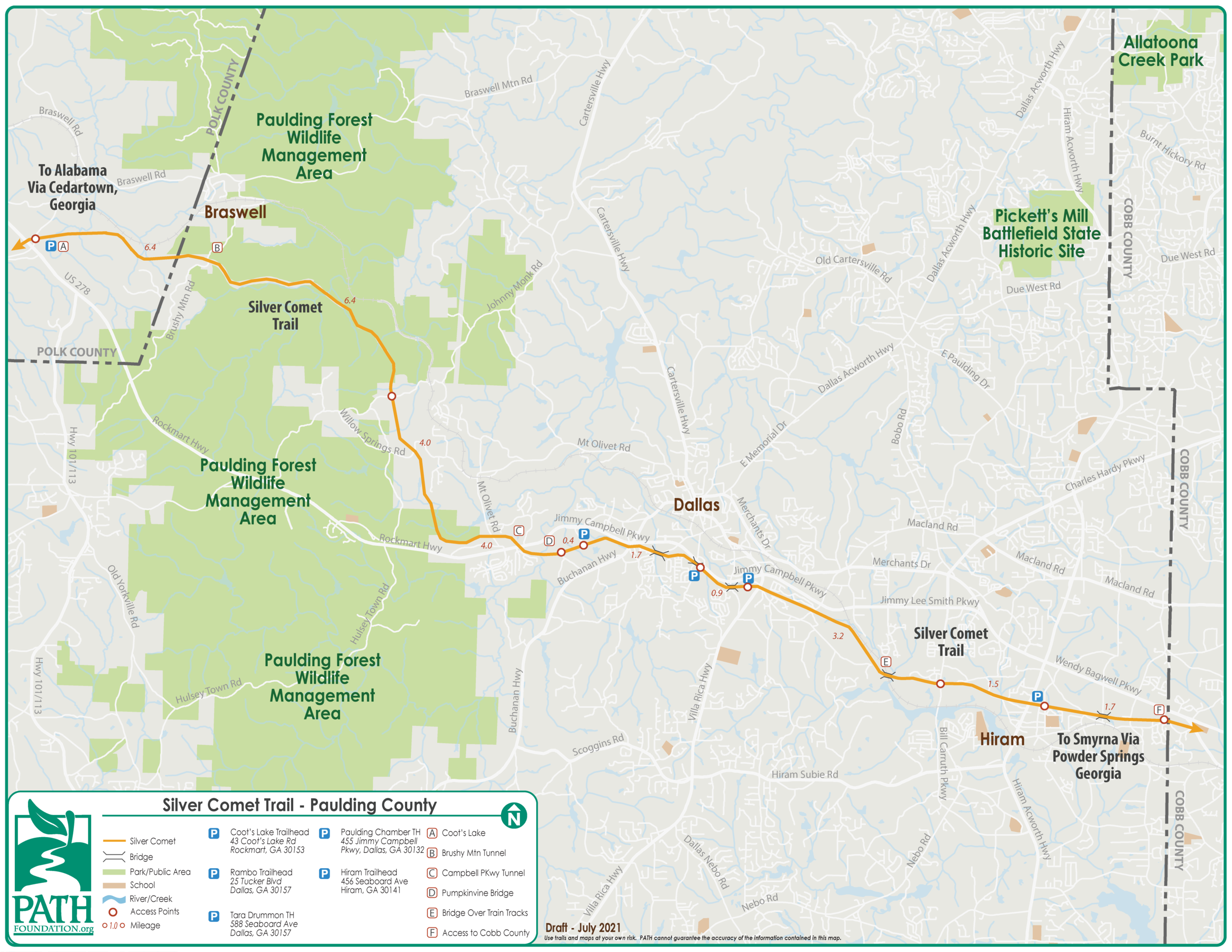 Nearby Attractions/Trails: Hertitage Park in Mableton, Wildhorse Trail in Powder Springs, Pumpkinvine Trestle in Dallas, Brushy Mountain Tunnel in Rockmart, Historic Downtown Rockmart & Riverwalk Park, State Line Gateway