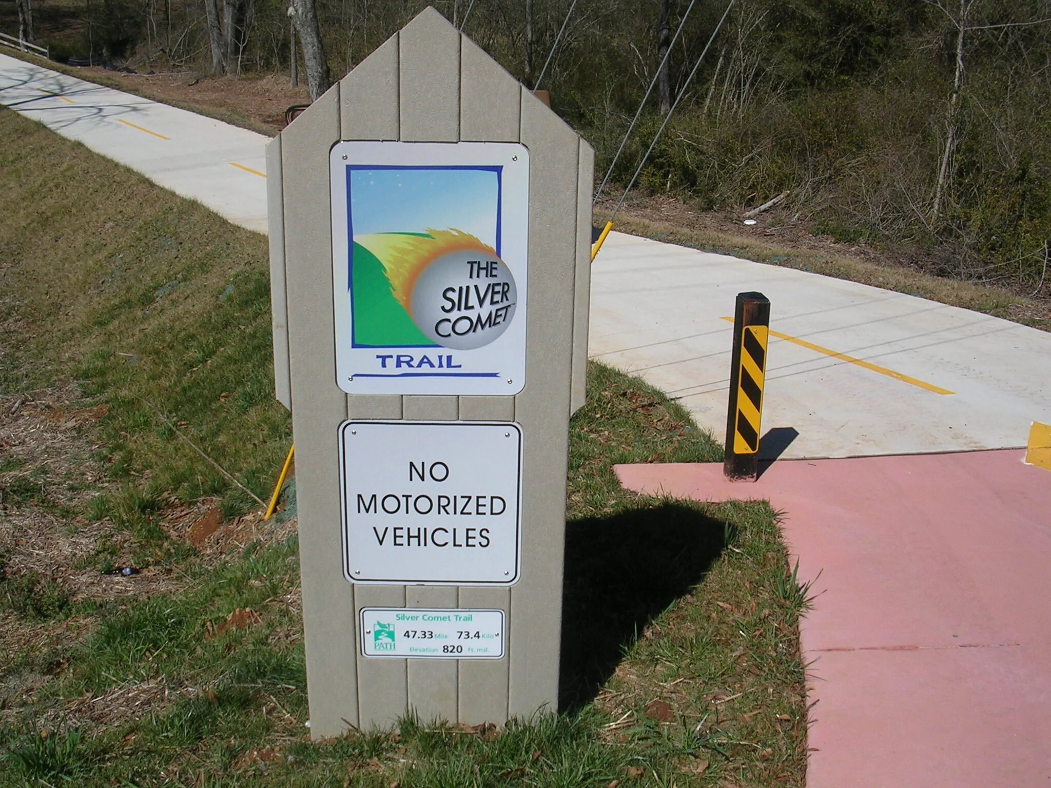 About: The Silver Comet Trail is the longest, continuous, paved trail in the United States at 94 miles when coupled with the Chief Ladiga Trail in Alabama (33 miles). The Silver Comet is a 12-foot wide, flat grade trail from Cobb County, Georgia to the Alabama stateline, west of Cedartown. It has restrooms, signs, benches and trash receptacles along the way. It features breathtaking trestles, a 700 foot-long tunnel, some of the most beautiful vistas in Georgia and passes through or very near four towns with restaurants and shops. Definitely a cyclists dream.